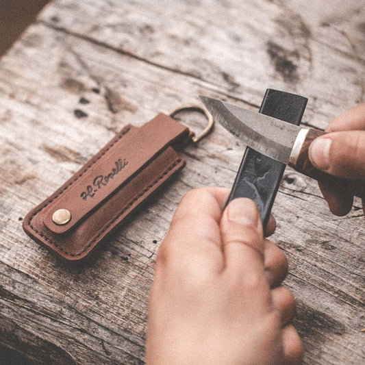 Piedra de afilar en funda de cuero